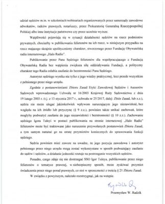 Prawo do rzetelnego procesu, niezależność sądownictwa, niezawisłość sędziowska, wymiar sprawiedliwości w Konstytucji RP i procedura karna to tematy zakazane. Zakazane jako motywy felietonów sędziego Igora Tulei dla obywatelskiego Halo.Radio – tak zdecydował Przemysław Radzik, osławiony wicerzecznik dyscyplinarny i wiceprezes Sądu Okręowego w Warszawie.