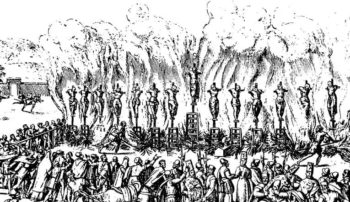 Auto-da-fé w Validolid ww Hiszpanii 21 maja 1559 r. Rysunek z epoki.