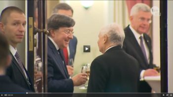 poruszony materiałem filmowym z Pana udziałem wyświetlonym w „Faktach” TVN z 12 grudnia br., pragnę Panu pogratulować bohaterskiej postawy w walce o zachowanie demokratycznego państwa prawa w Polsce. Przecież widać, że uchwycony przez kamerzystę uśmiech na Pana twarzy to tylko pozory skrywające najgłębszy ból, gdy musi Pan – nolens volens – wychylić z Prezesem PiS kieliszek szampana.