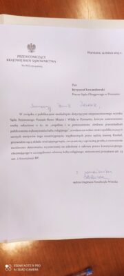 Poza wzmożeniem moralnym, które w reakcji na wyrok wylało się z mediów partyjnych i państwowych na sędzię Joannę Knobel koniecznie trzeba odnotować kuriozalne pismo sędzi Dagmary Pawełczyk-Woickiej, przewodniczącej KRS do prezesa Sądu Okręgowego w Poznaniu, które Krajowa Rada Sądownictwa opublikowała na swoim profilu w serwisie społecznościowym.