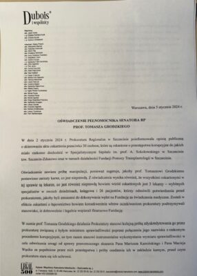 OŚWIADCZENIE PEŁNOMOCNIKA SENATORA RP