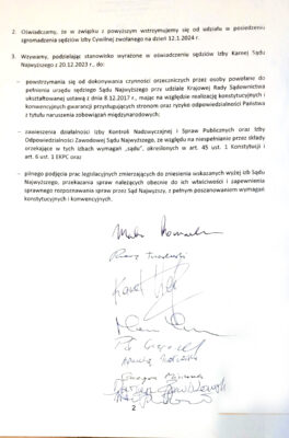 2. Oświadczamy, że w związku z powyższym wstrzymujemy się od udziału w posiedzeniu zgromadzenia sędziów Izby Cywilnej zwołanego na dzień 12.1.2024 r.