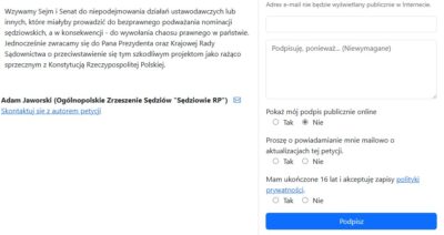 Jednym z przejawów aktywności Sędziów RP, prócz przytoczonej wyżej uchwały w obronie Trybunału przed Robertem Biedroniem jest ciekawa petycja, adresowana zdaje się do Sejmu i Senatu, „w obronie bezpieczeństwa prawnego obywateli i nieusuwalności sędziów”