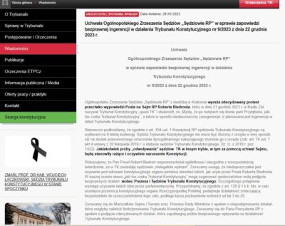 Jeszcze do niedawna strona internetowa Trybunału w Alei J. Ch. Szucha 12, prócz obowiązkowego trybutu na rzecz państwa i obywateli w postaci informacji o sprawach, wyrokach, niekiedy – transmisji z rozpraw publikowała, jako ważne wydarzenia nekrologi, życzenia świąteczne i zdjęcia z uczestnictwa Julii Przyłębskiej w wydarzeniach politycznych. Pewną zmianą, która dokonała się przed miesiącem (opóźnienie po stronie Monitora wynika z przyczyny całkowicie od Redakcji niezależnej), wzbogacającą i tak obfitującą w treść stronę trybunal.gov.pl, jest pojawienie się na niej głosu w obronie niezależności Trybunału Konstytucyjnego, atakowanego wszak nieustannie przez hordy Tuska i Hołowni.