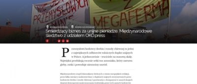 O sprawie powiadomiliśmy zagranicznych dziennikarzy, którzy uczestniczyli w międzynarodowym śledztwie dotyczącym dopłat z UE. Stanowisko w tej sprawie przesłał nam Greenpeace Polska: „Raport, którego częścią są ustalenia dziennikarzy OKO.press mówi o rzeczach niezmiernie ważnych dla naszego zdrowia i dla stanu środowiska. Dzięki pracy dziennikarzy z ośmiu krajów UE dowiedzieliśmy się po pierwsze, że nasze podatki przekazywane jako wsparcie w ramach Wspólnej Polityki Rolnej finansują szkodliwe dla ludzi i środowiska zanieczyszczenia z wielkich ferm przemysłowych, a po drugie, że system kontroli tych zanieczyszczeń jest dziurawy – i to nie tylko w Polsce. To co powinniśmy zrobić, w Polsce i innych krajach unijnych, to zmienić funkcjonowanie Wspólnej Polityki Rolnej, by służyła ona naszemu zdrowiu i przyrodzie, a nie przede wszystkim wielkim przedsiębiorstwom, które – jak wynika z raportu – często są również wielkimi trucicielami”.